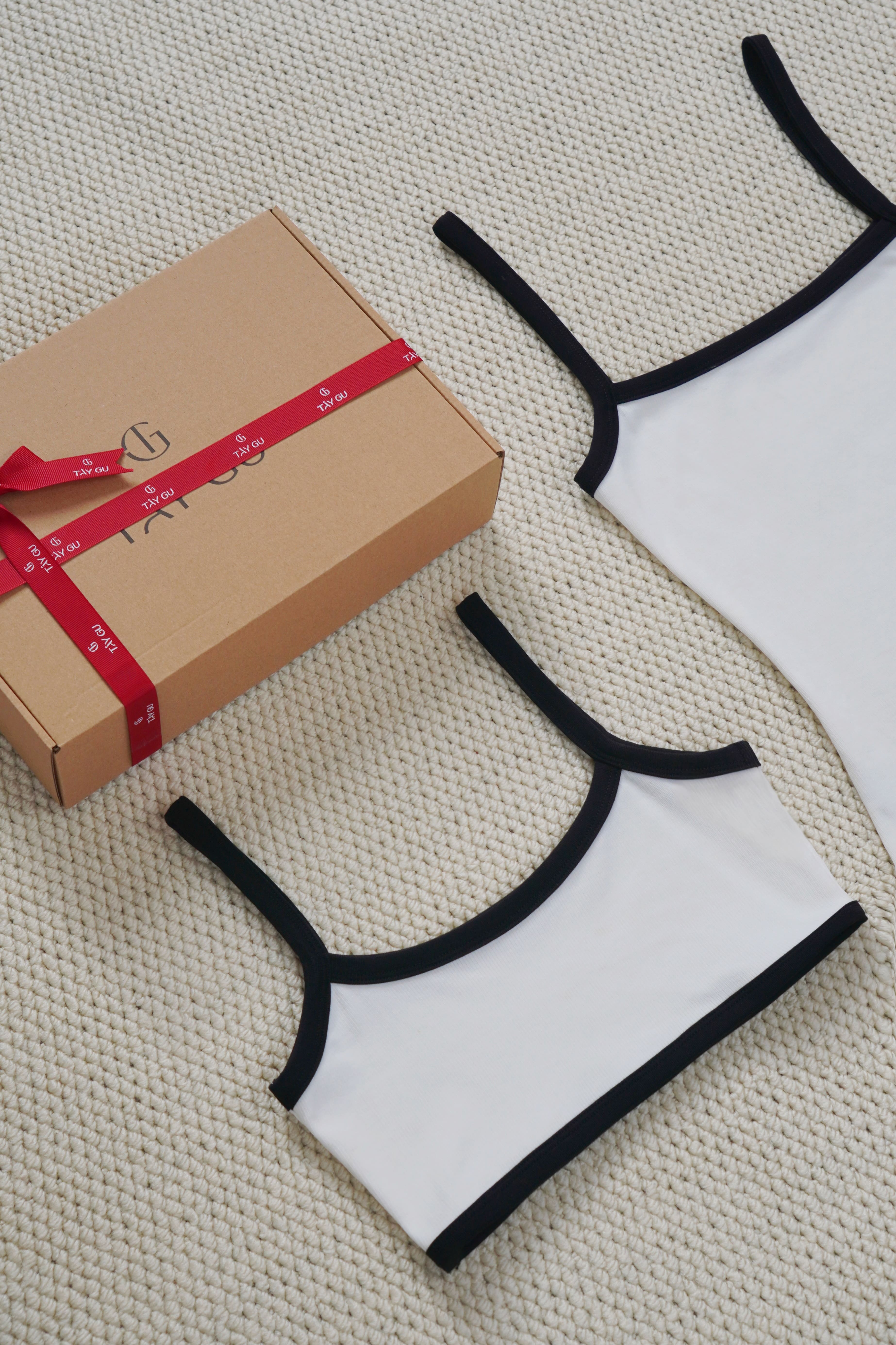 Áo AULA – AT47 là thiết kế croptop hai dây trắng phối viền đen nổi bật, mang tinh thần trẻ trung và hiện đại. Sự tương phản giữa nền trắng và viền đen giúp tổng thể trông sắc nét, cá tính nhưng vẫn giữ được nét tối giản.