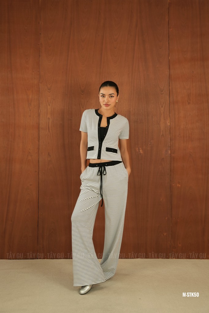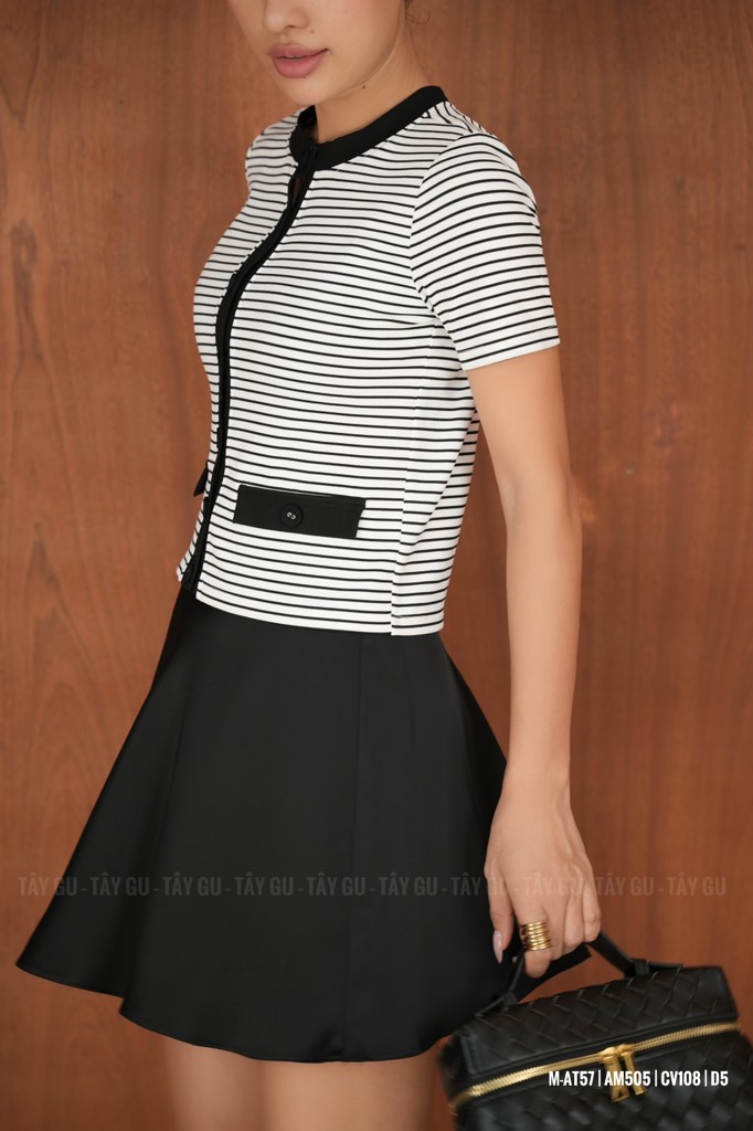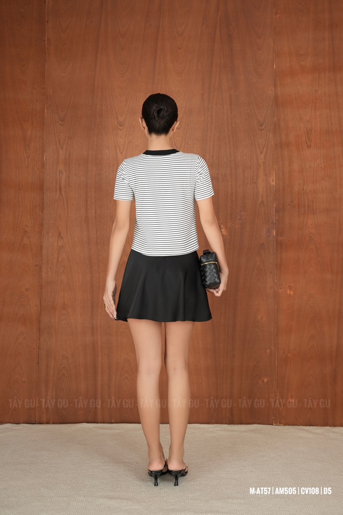 Áo PATI – AT57 là thiết kế sọc phối viền đen nổi bật, mang tinh thần trẻ trung và hiện đại. Họa tiết sọc giúp tổng thể trông năng động hơn, trong khi phần viền đen tạo điểm nhấn rõ nét, giúp outfit thêm phần cá tính và gọn gàng.