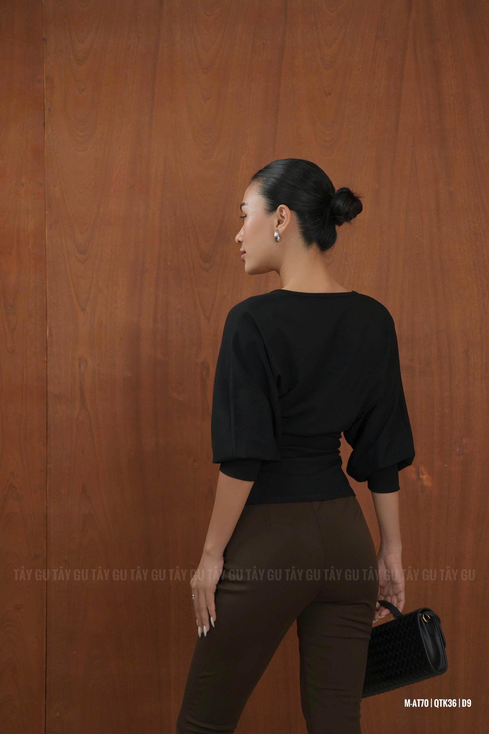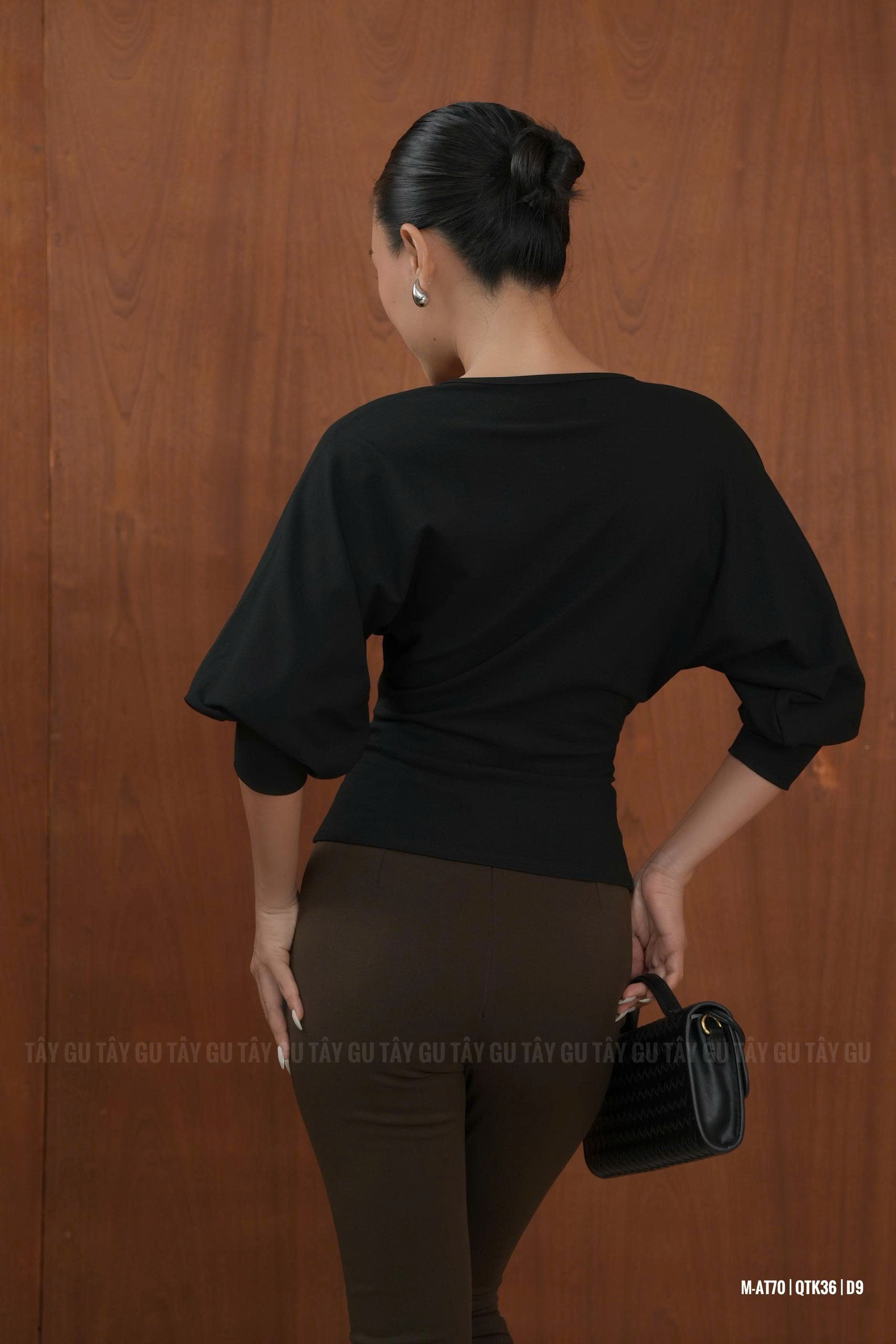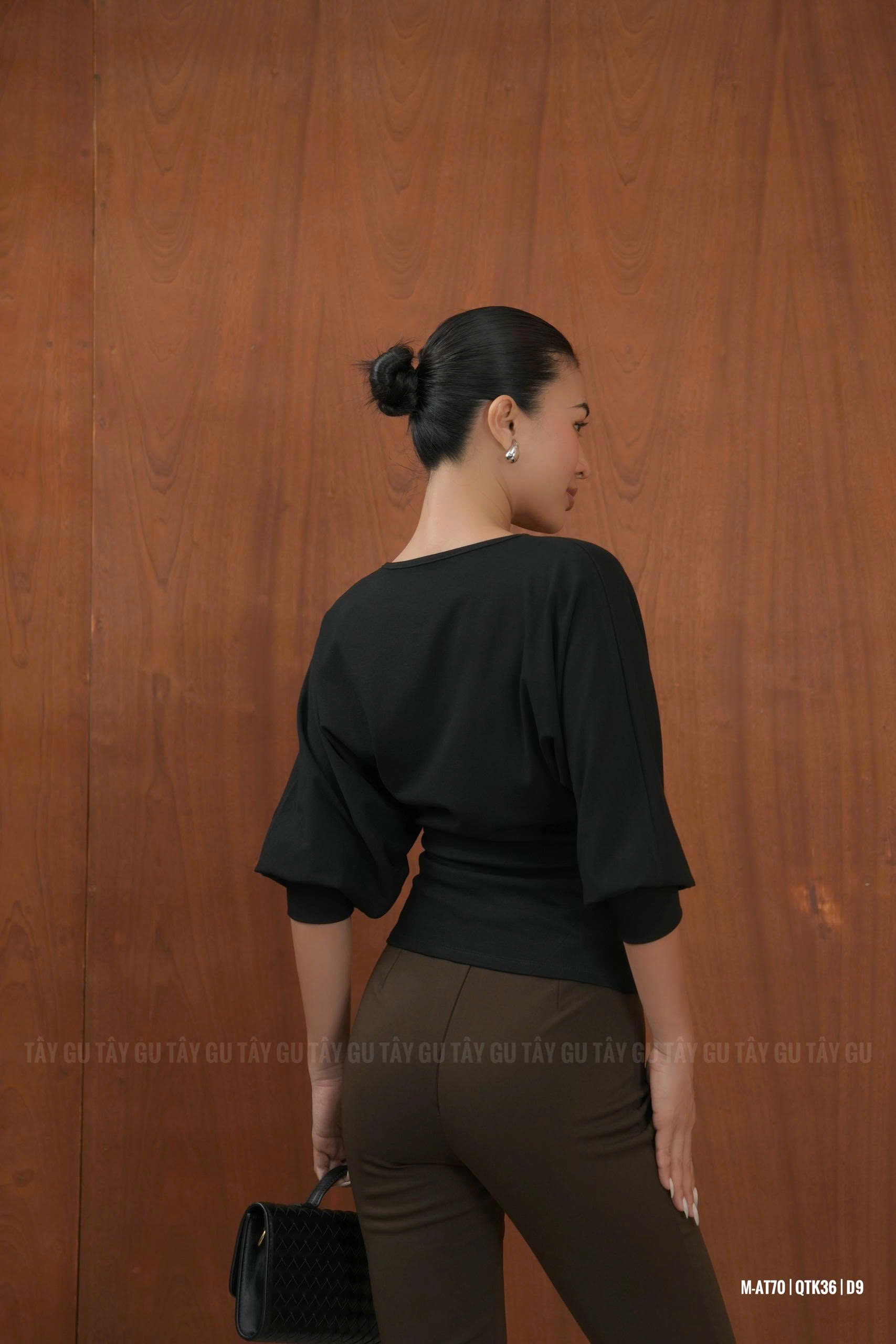 Tên sản phẩm: Áo thun đen tay dài thiết kế bồng cổ V MAVA