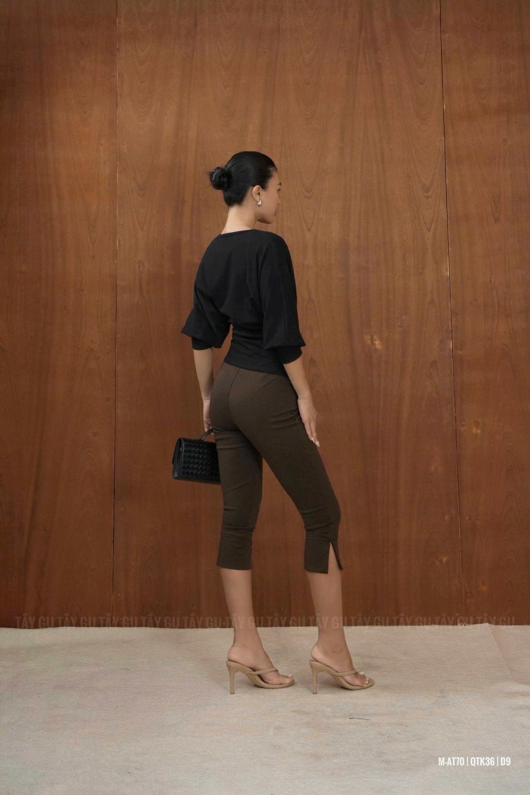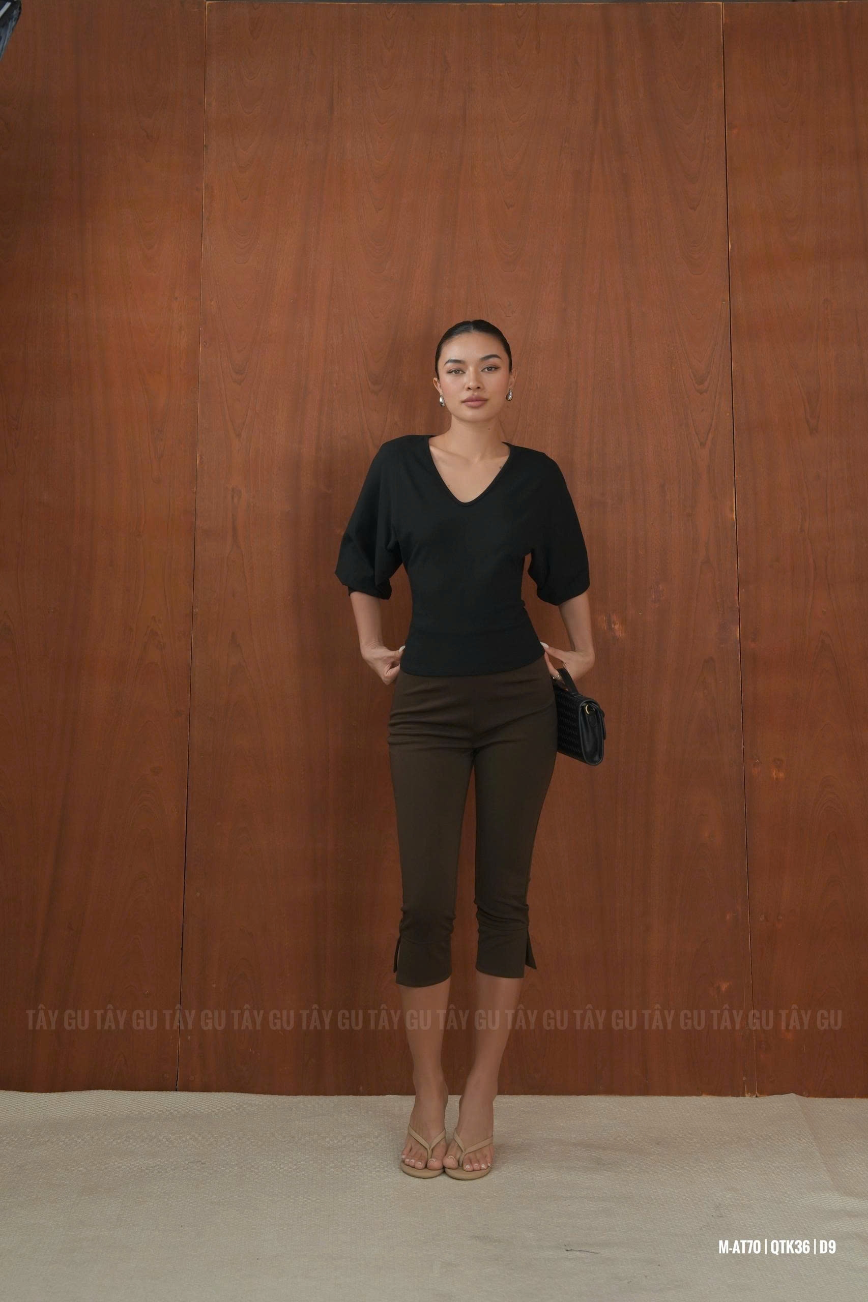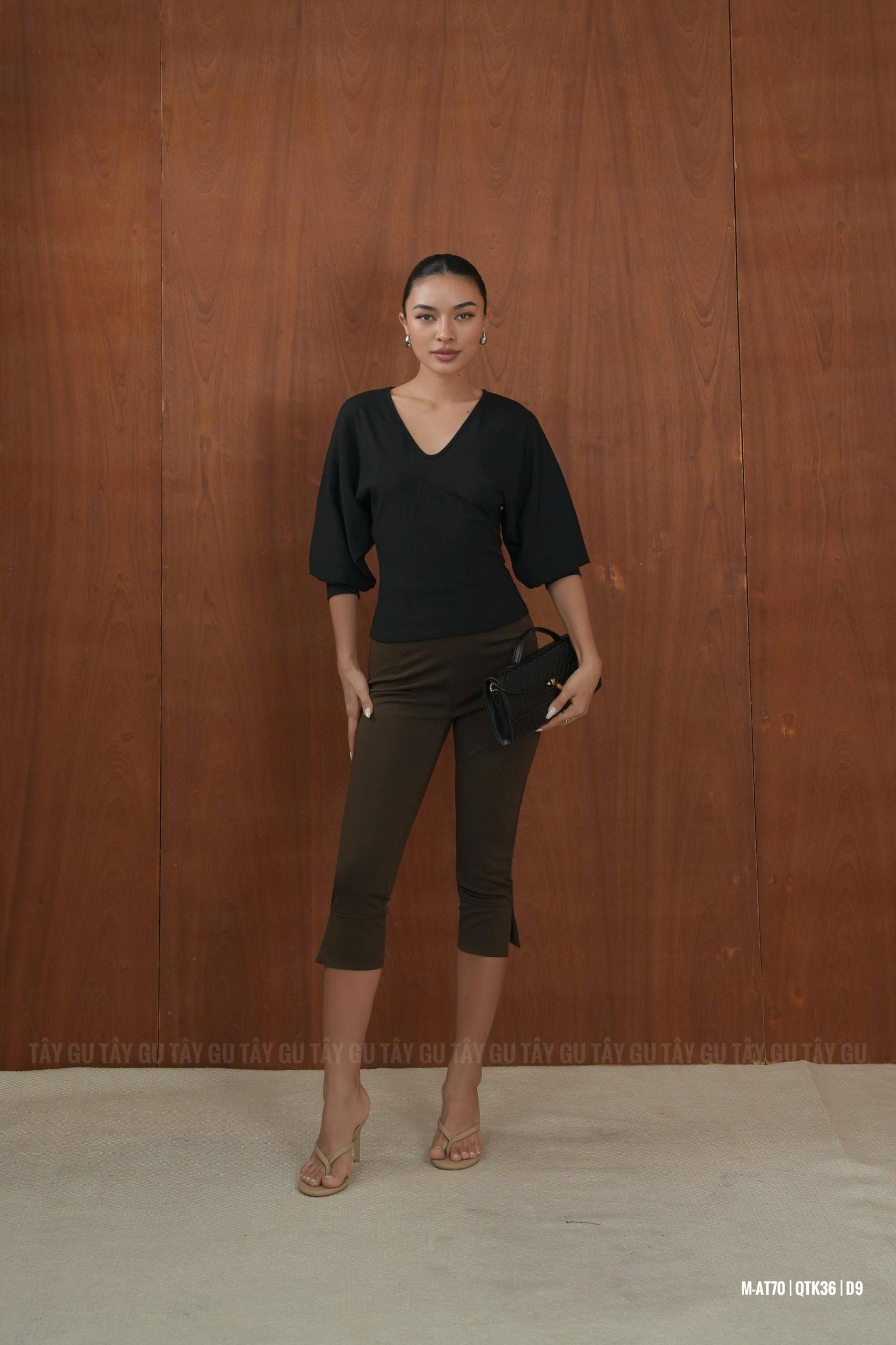 Tên sản phẩm: Áo thun đen tay dài thiết kế bồng cổ V MAVA