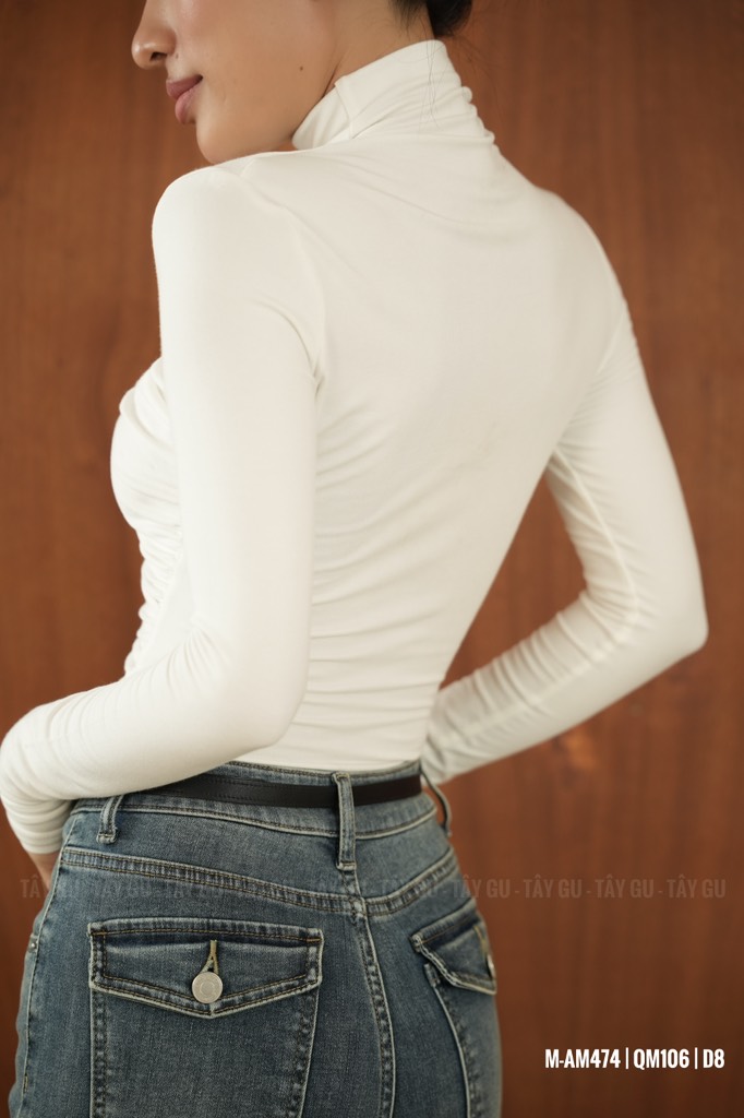 Tên sản phẩm: Áo thun tay dài cổ lọ thấp nhún vai eo