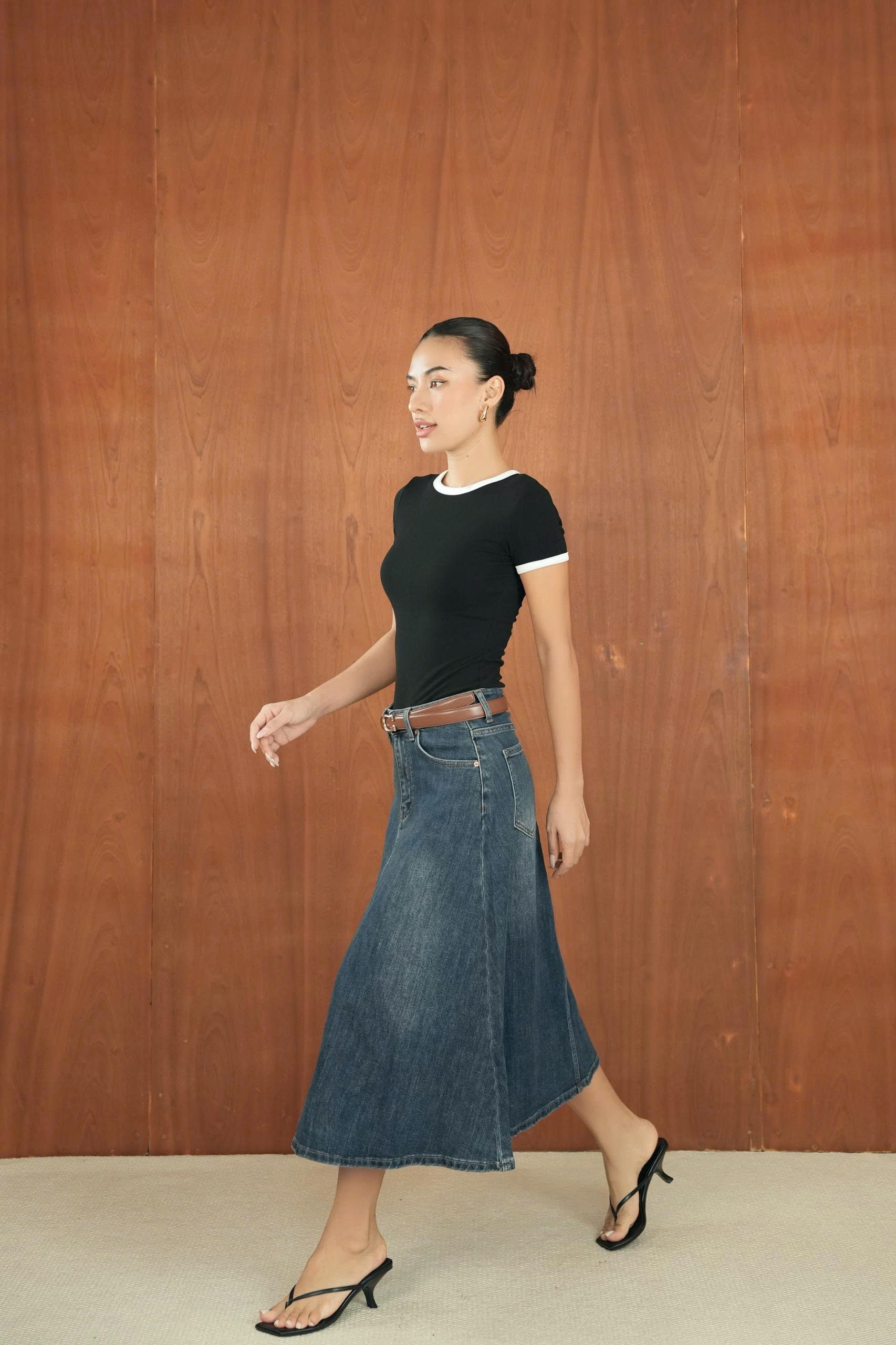 Kết hợp cùng áo sơ mi trắng và giày bệt cho phong cách công sở thanh lịch, hoặc mix với áo thun và sneaker để có set đồ năng động, trẻ trung. Thêm áo khoác nhẹ hoặc cardigan là đã có ngay outfit hoàn chỉnh cho những ngày se lạnh.