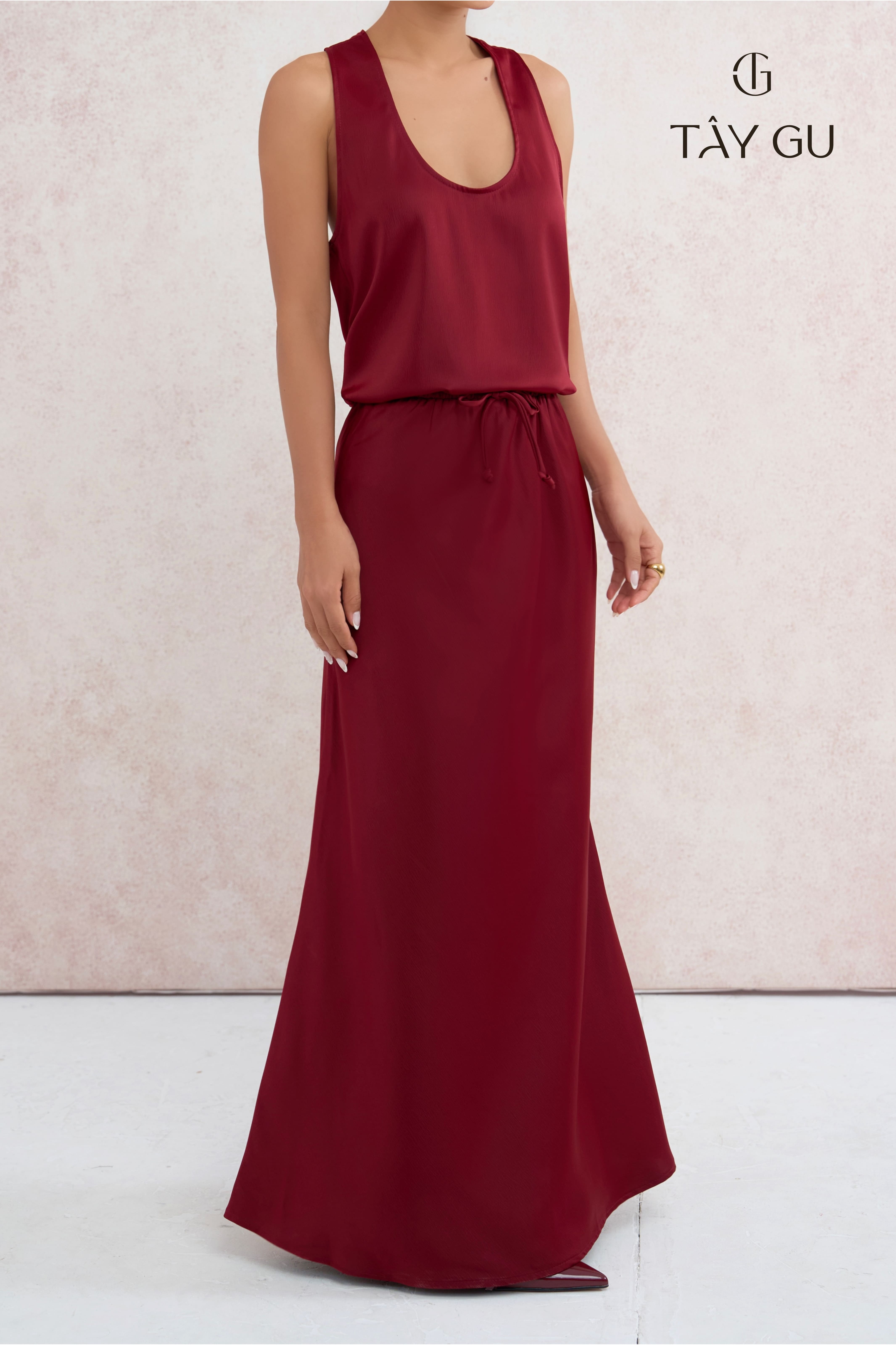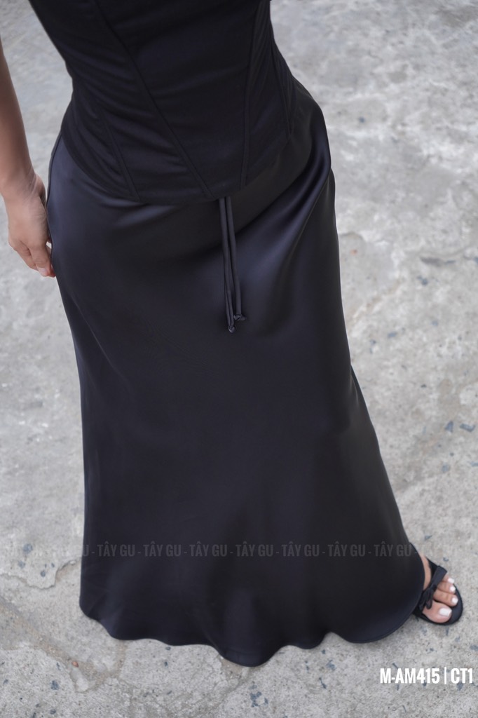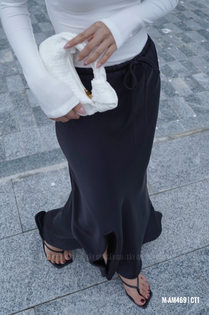 Tên sản phẩm: Chân váy lụa 2 lớp dáng đuôi cá lưng dây rút EMMA