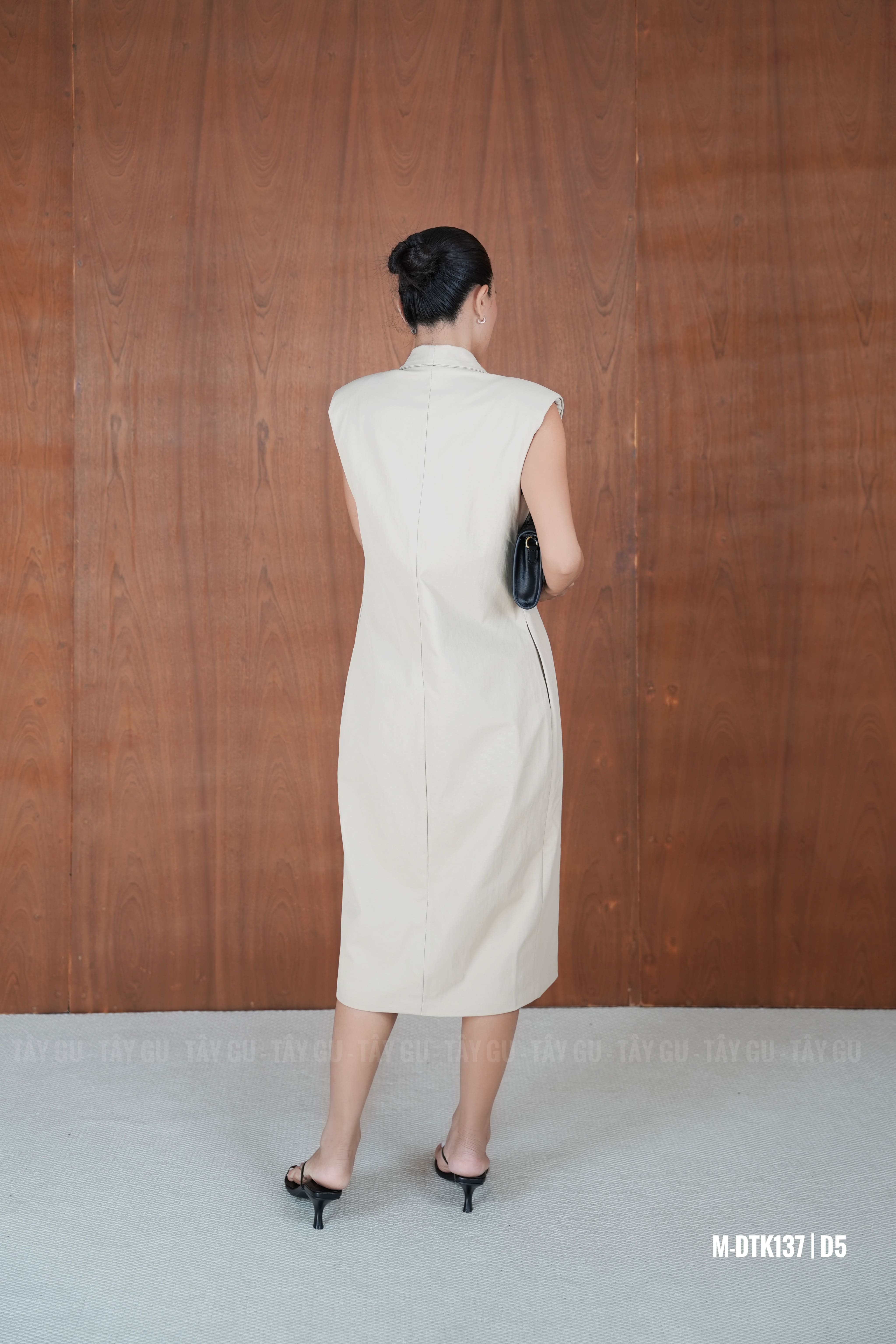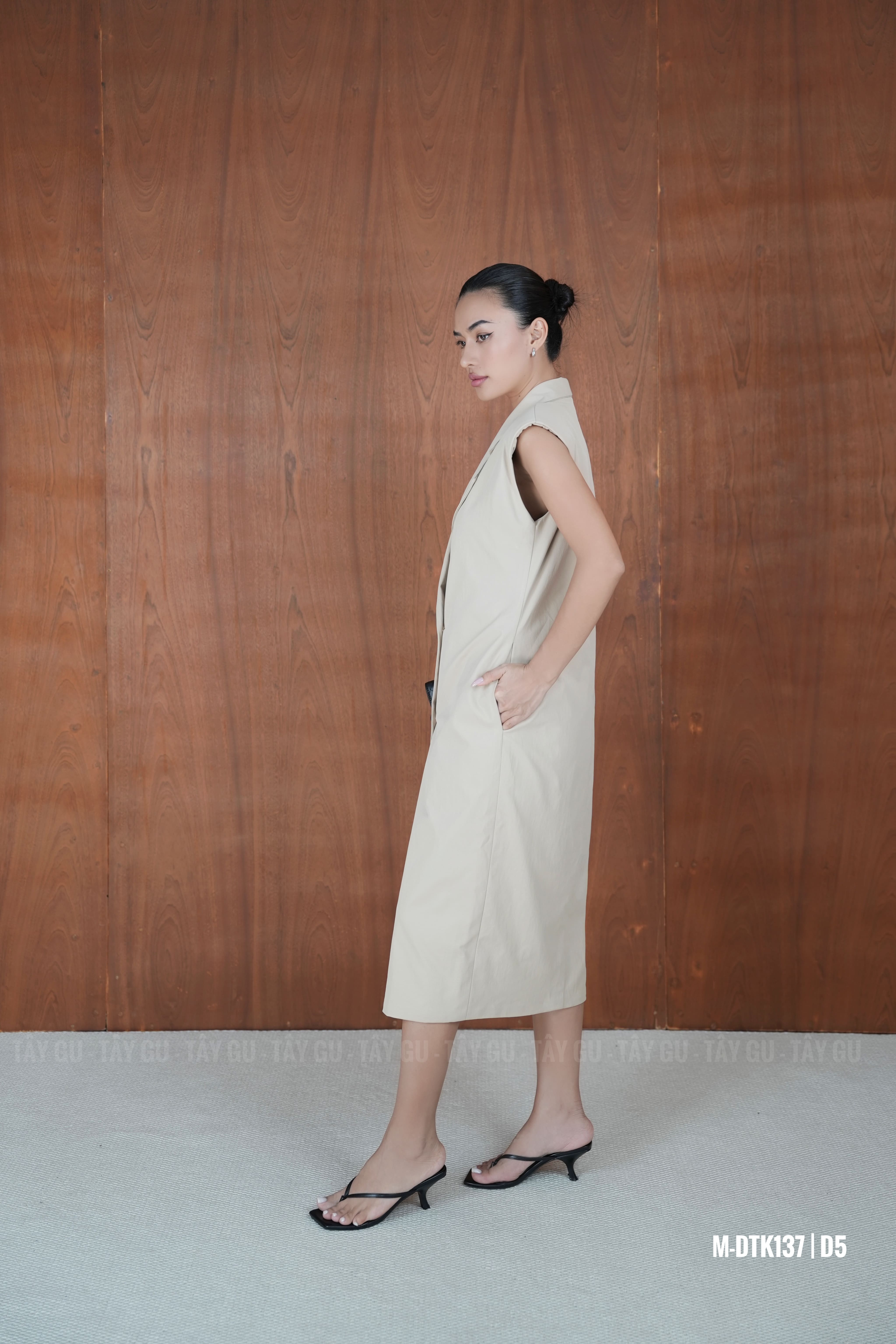 Chất kaki dày đứng form giúp giữ cấu trúc trang phục rõ ràng, tạo hiệu ứng sang trọng và chuyên nghiệp. Tông nude trung tính dễ ứng dụng, tôn da và phù hợp nhiều môi trường khác nhau. BERRY có thể mặc như một chiếc đầm vest độc lập hoặc khoác ngoài như áo vest dài, linh hoạt biến hóa theo từng hoàn cảnh.