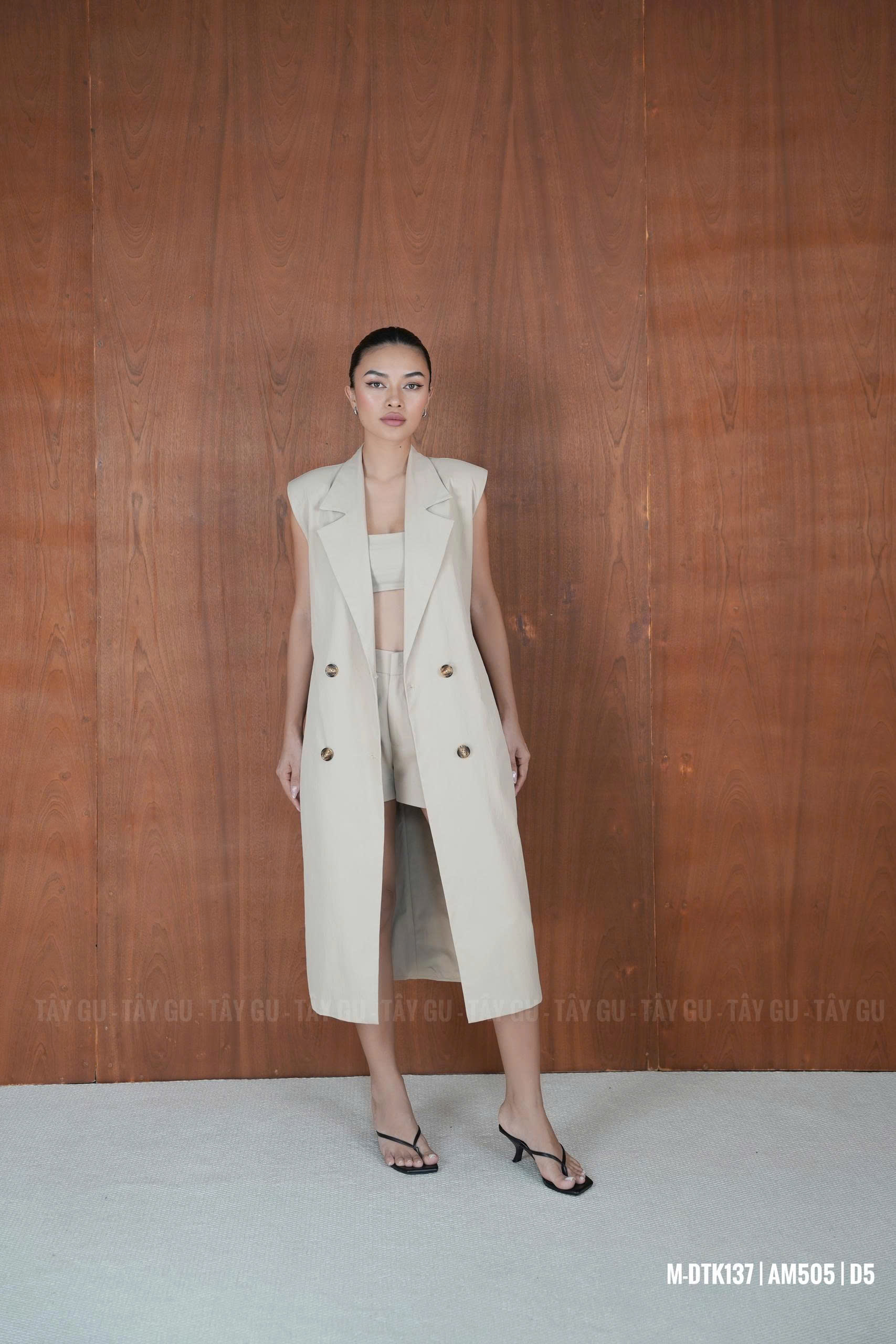 Kiểu dáng: Vest dài, không tay, có thể mặc đầm hoặc khoác ngoài