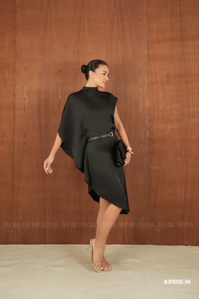 Đầm lụa HAVOS – DTK135 là thiết kế mang tinh thần tối giản cao cấp, nổi bật với phom dáng chéo bất đối xứng đầy tinh tế. Chi tiết cổ lọ kết hợp cùng tay lệch tạo nên tổng thể hiện đại và khác biệt, giúp tôn phần cổ – vai một cách thanh thoát và sắc nét.