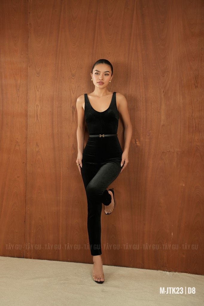 Jumpsuit SILVA – JTK23 là thiết kế dành cho những cô nàng yêu thích vẻ đẹp tối giản nhưng đầy cuốn hút. Chất liệu nhung đen mềm mịn, co giãn tốt ôm trọn đường nét cơ thể, giúp tôn dáng rõ rệt mà vẫn mang lại cảm giác thoải mái khi mặc.