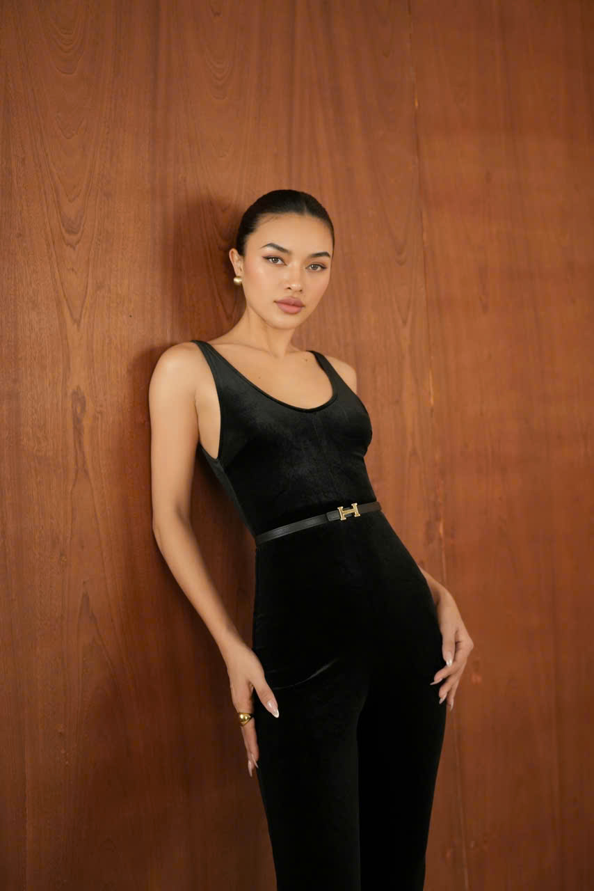 Tên sản phẩm: Jumpsuit Nhung Đen Ôm Dáng Co Giãn SILVA