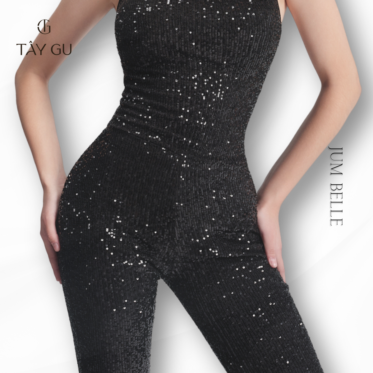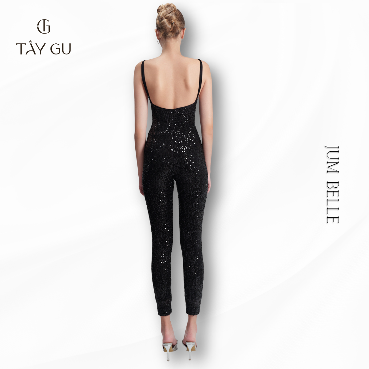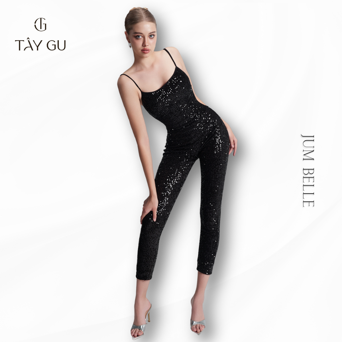 Jumpsuit BELLE – JTK17 là thiết kế hai dây nổi bật với hiệu ứng bling bắt sáng, mang đến vẻ ngoài cuốn hút và đầy khí chất. Gam đen kết hợp chi tiết lấp lánh giúp tổng thể vừa sang trọng vừa nổi bật trong không gian ánh đèn.