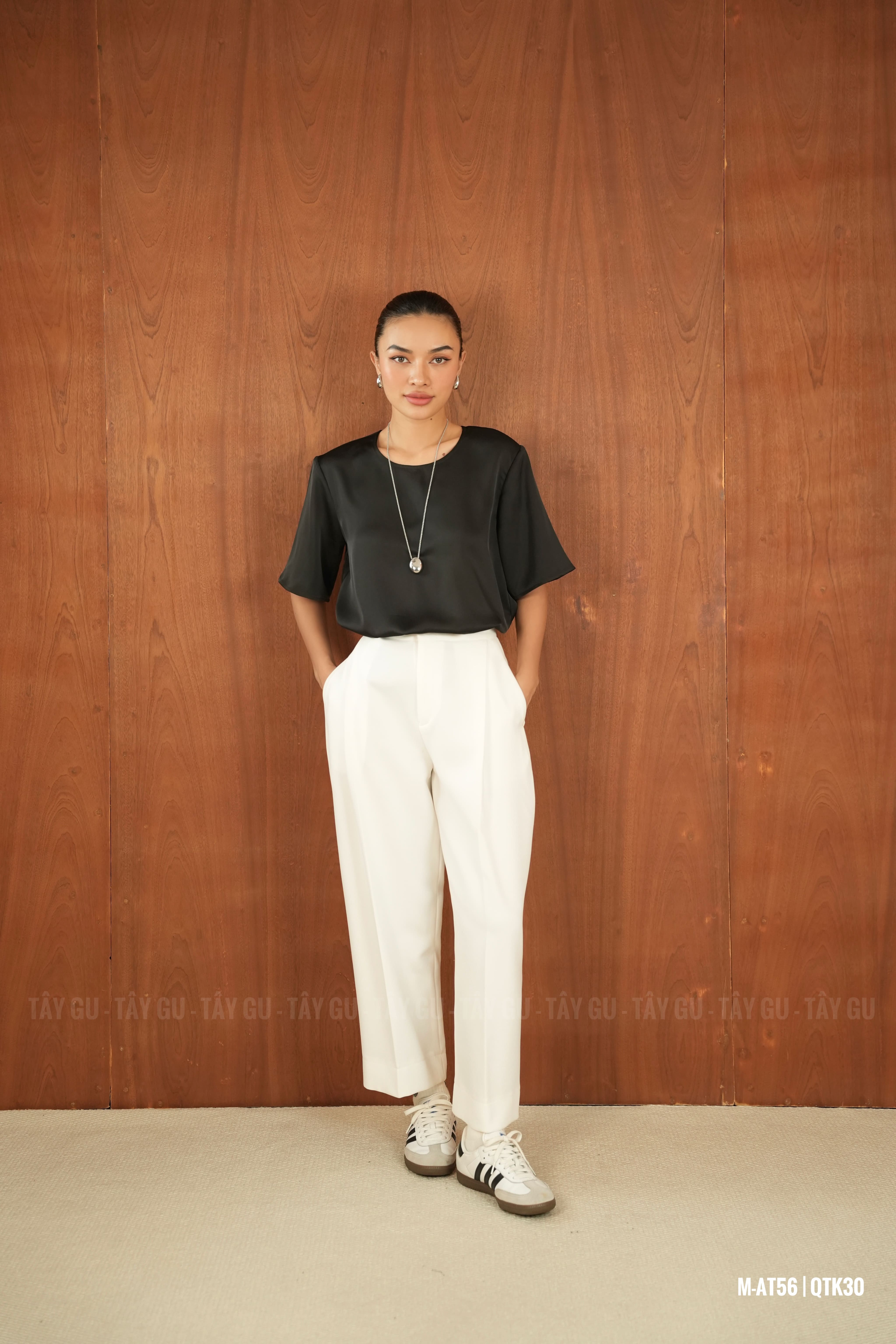 Phối đẹp với áo sơ mi, áo thun, áo lụa hoặc blazer. Mang sneaker cho vibe năng động hoặc guốc/sandal để outfit trông thanh lịch và cao ráo hơn.