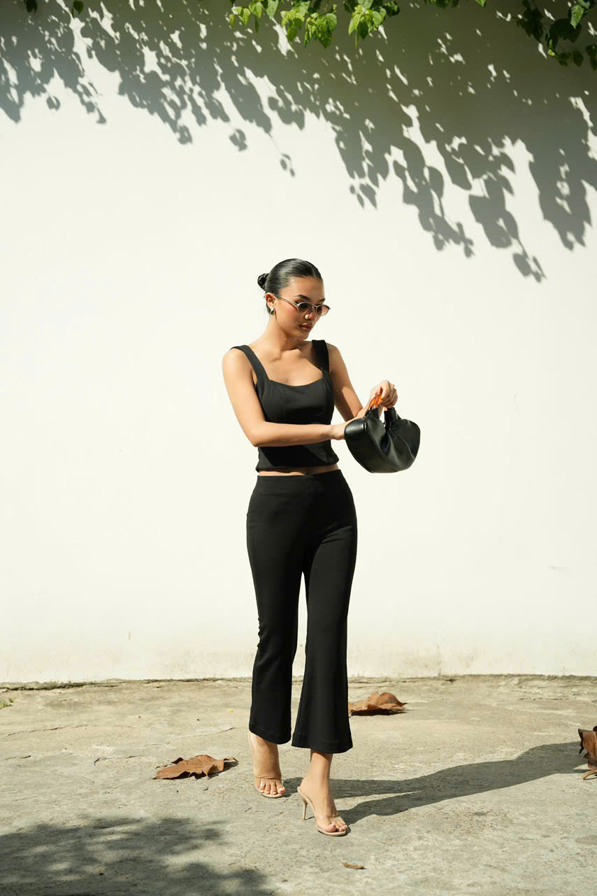 Quần lửng DEANI là thiết kế dáng loe hiện đại, tập trung vào khả năng tôn dáng và kéo dài chân. Gam đen basic giúp tổng thể gọn gàng, dễ phối và phù hợp nhiều hoàn cảnh từ đi làm đến đi chơi.