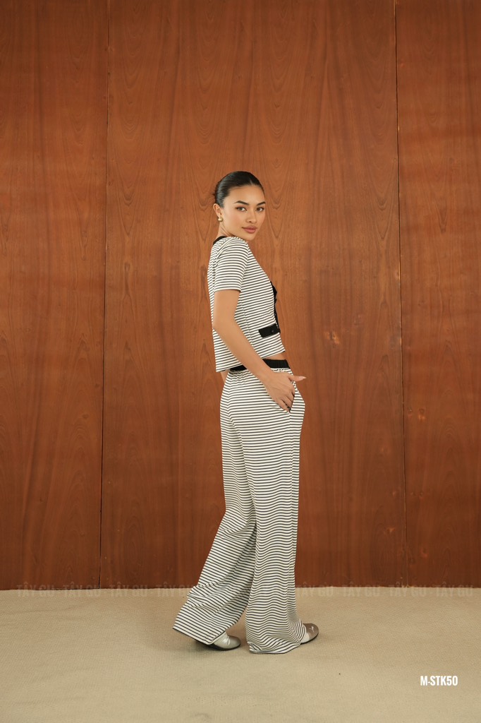 Họa tiết sọc tạo hiệu ứng chân dài, dáng gọn hơn