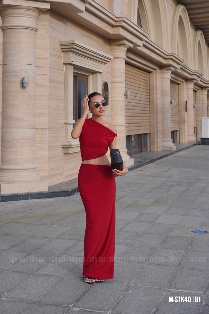 Set KAMI – STK40 là thiết kế áo và váy đồng bộ nổi bật với chi tiết xoắn cuộn tinh tế, tạo hiệu ứng ôm dáng và tôn đường cong mềm mại. Gam đỏ đô mang lại vẻ ngoài cuốn hút, sang trọng và đầy khí chất.