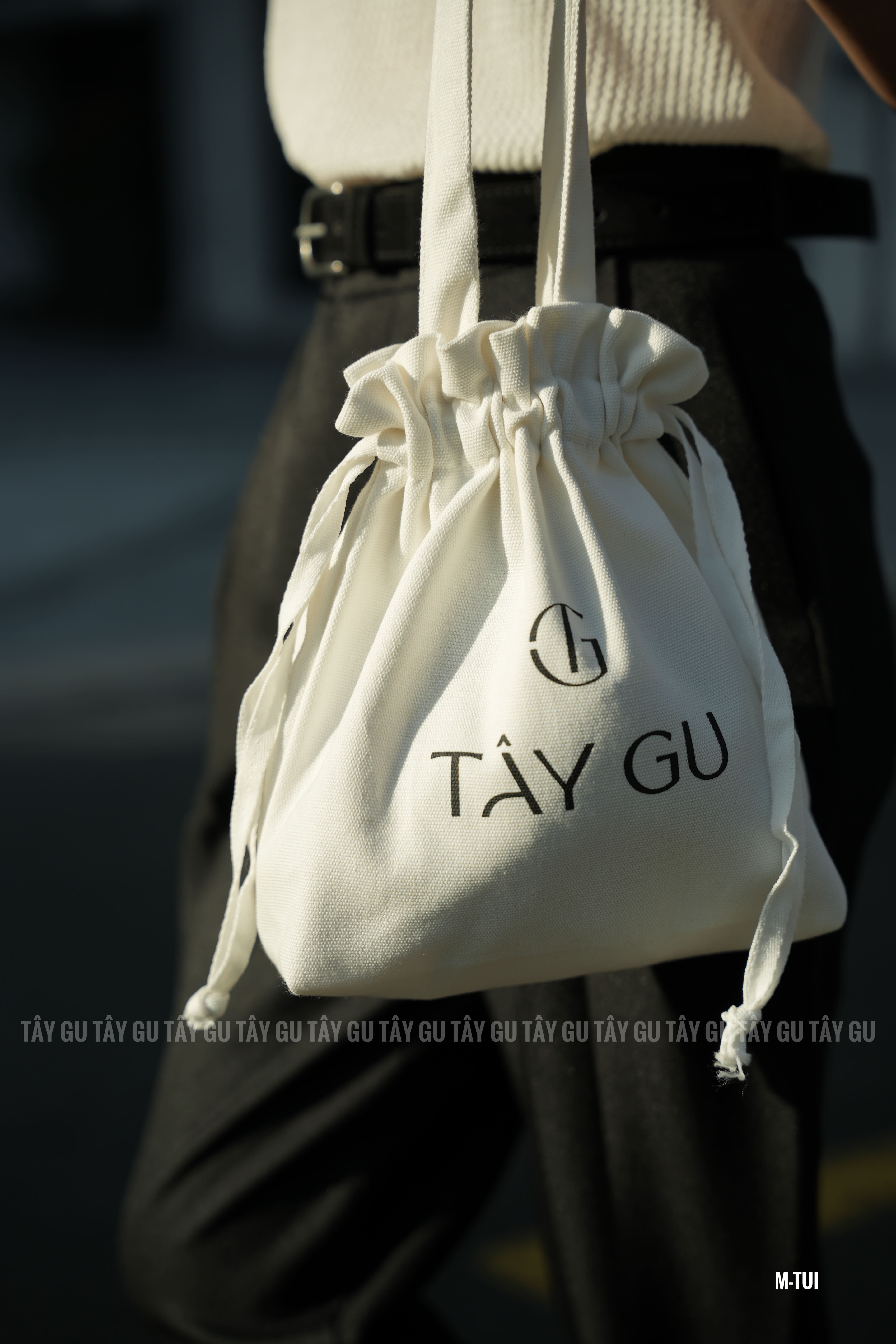 Túi tote Taygu là thiết kế canvas dây rút mang phong cách tối giản và tiện dụng. Gam trắng basic giúp tổng thể nhẹ nhàng, dễ phối với nhiều outfit khác nhau từ casual đến thanh lịch.
